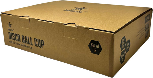 Bolaras Silver Disco Ball Cups (12 Pack) with Name Tags