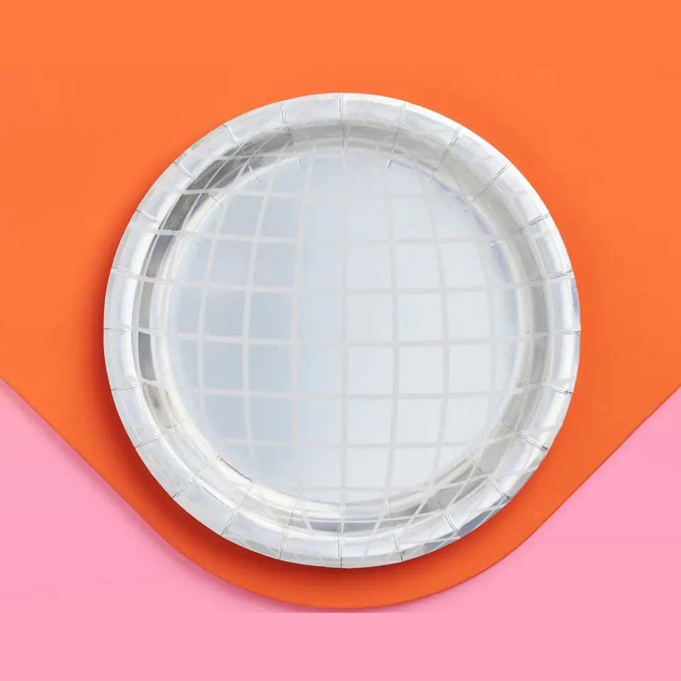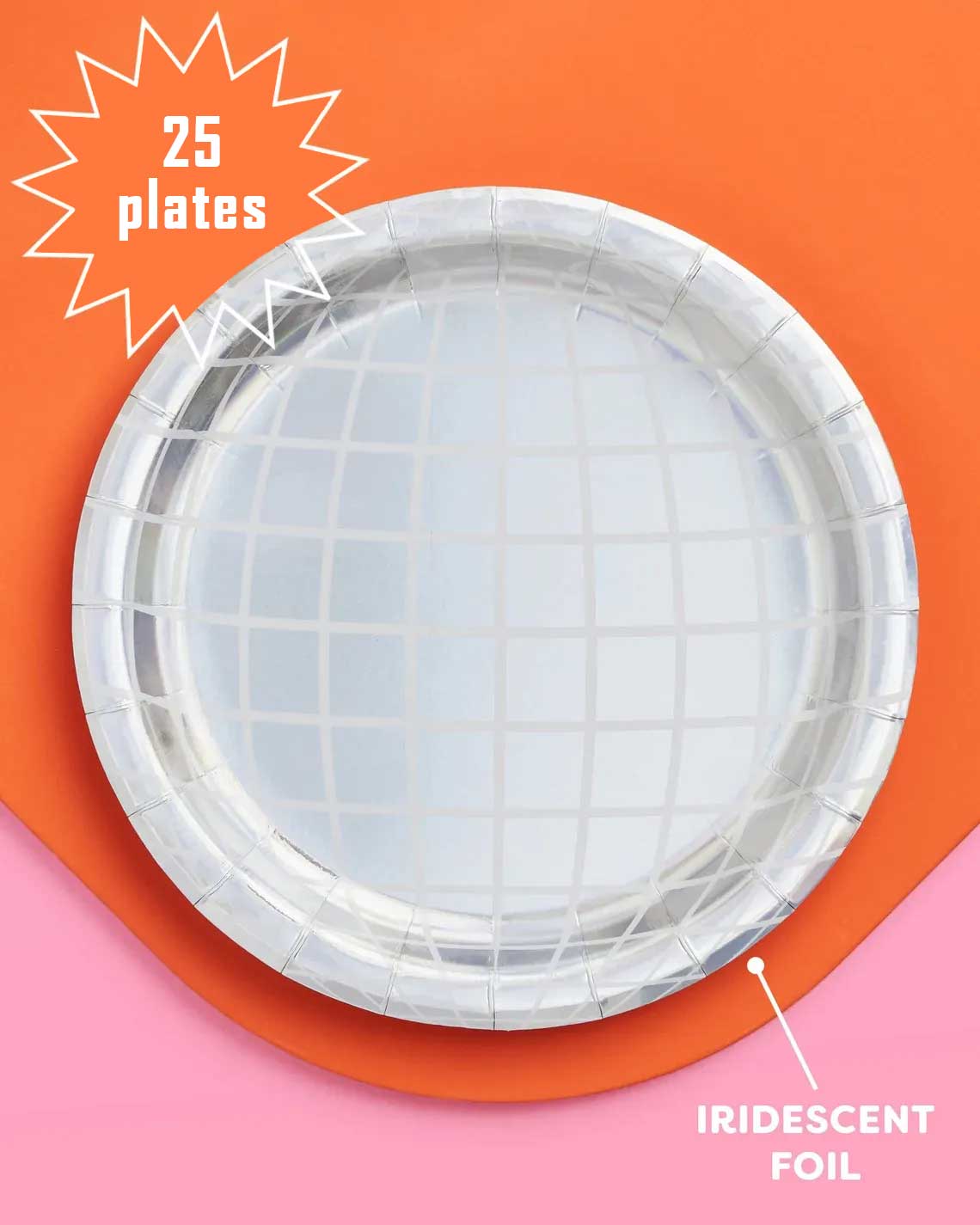 Bolaras Silver Disco Ball Paper Plates - 25 count - 9" diameter