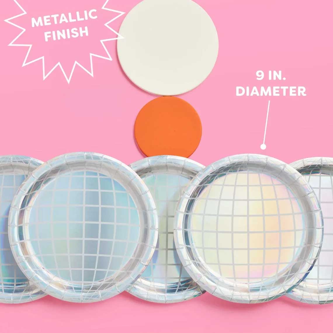 Make a Statement: Our 25-pack of 9" paper plates feature a mirror-like, iridescent finish, promising to be a showstopper at any event. From bachelorettes to birthdays, our plates are sure to turn heads. Every set includes 25 plates for a full cake or dinner service.
