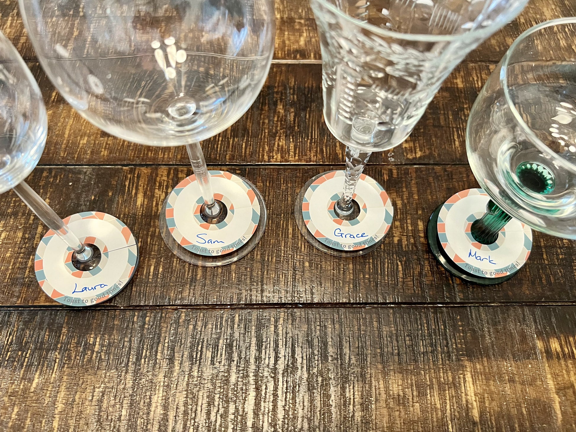 Make it easier to know which glass is yours and prevent people from accidentally sharing by labeling each one with a name, nickname, or identifiable information by sliding on a DIY drink name tag from Bolaras.